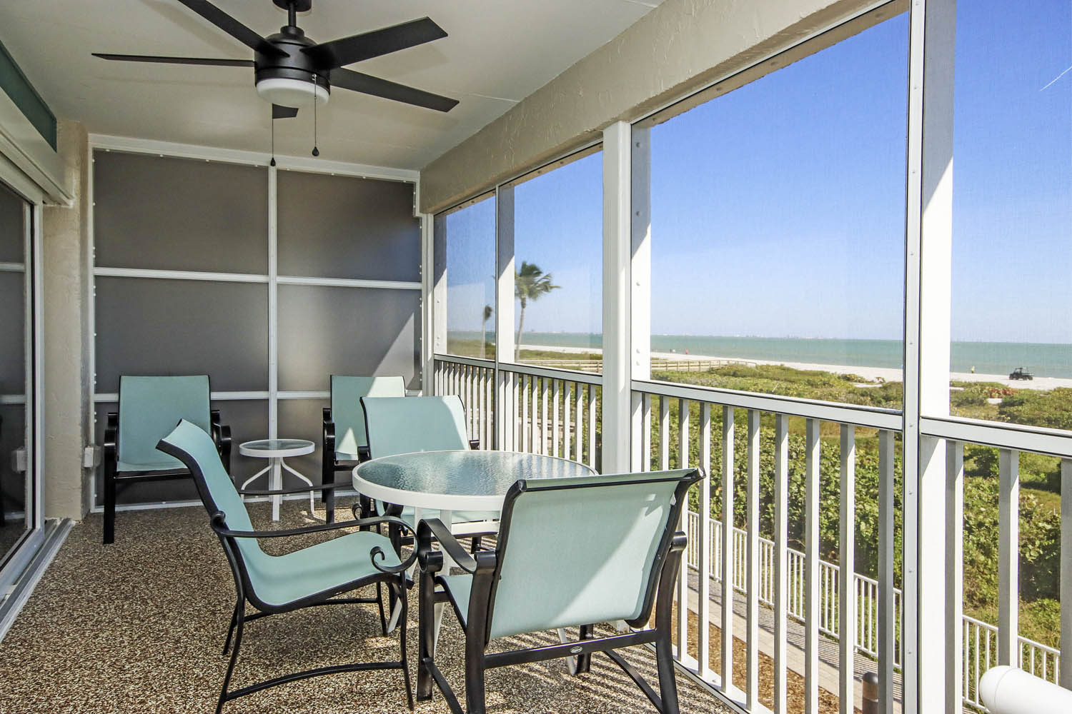 Our spacious suites are comfortably equipped, centrally air conditioned, two bedroom-two bath accommodations, with living and dining areas, full kitchens and large, private screened in lanais with porches or balconies. Park your car and forget all your everyday cares, as the miles of bicycle paths will take you around Sanibel Island to all the fabulous shopping villages and restaurants.