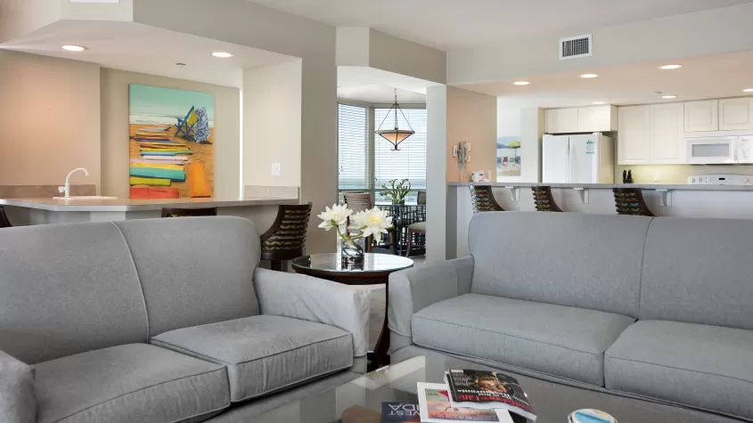 A contemporary beachfront resort, featuring spacious, impeccably-appointed 1-, 2- and 3-bedroom suites, an outdoor heated pool and jacuzzi, fitness room, elevated tennis court, barbecue grilling deck, guest bicycles, and breathtaking views of the Gulf of Mexico.